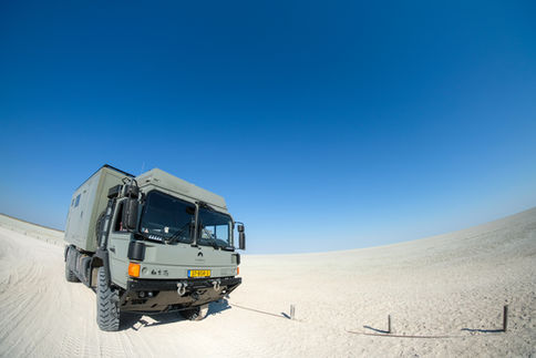 Khaudum National Park is behoorlijk wild en afgelegen, dus de meeste mensen slaan het over en kiezen voor de grotere, makkelijkere parken in Namibië. Maar wij gingen ervoor! Het vinden van dieren kost hier wat moeite, maar het is het absoluut waard. Met onze expeditietruck reden we door de verborgen plekjes van het park, ook al hebben we de lak een beetje beschadigd. Geen probleem! De truck is gemaakt voor avontuur, niet alleen voor de bestemming. We spotten olifanten, tonnen antilopen en een paar coole vogels.