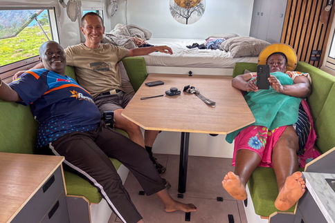But on the other hand, you're more than welcome on almost every farm. Often, we don't even have to ask, and we're regularly invited spontaneously. And before you know it, you've made new friends. Our truck is a real eye-catcher. Everyone is curious about our truck because of its unusual shape. Two Dutch people in a unique truck works very well in South Africa.