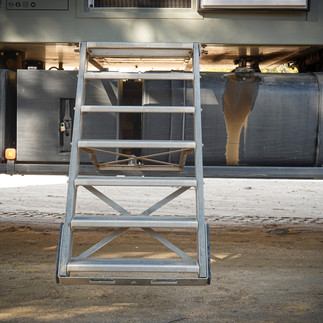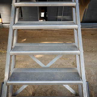 On to the "comfy stairs." This is the paradise of stair life. The steps are no longer on the ground but are completely attached to the truck by means of a super strong and rigid construction. You can effortlessly stand along a cliff, and the steps still stand perfectly.